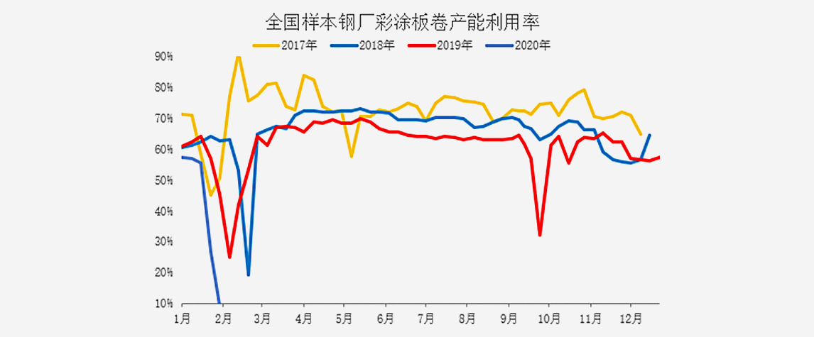 圖5:國內(nèi)彩涂板卷產(chǎn)能利用率情況